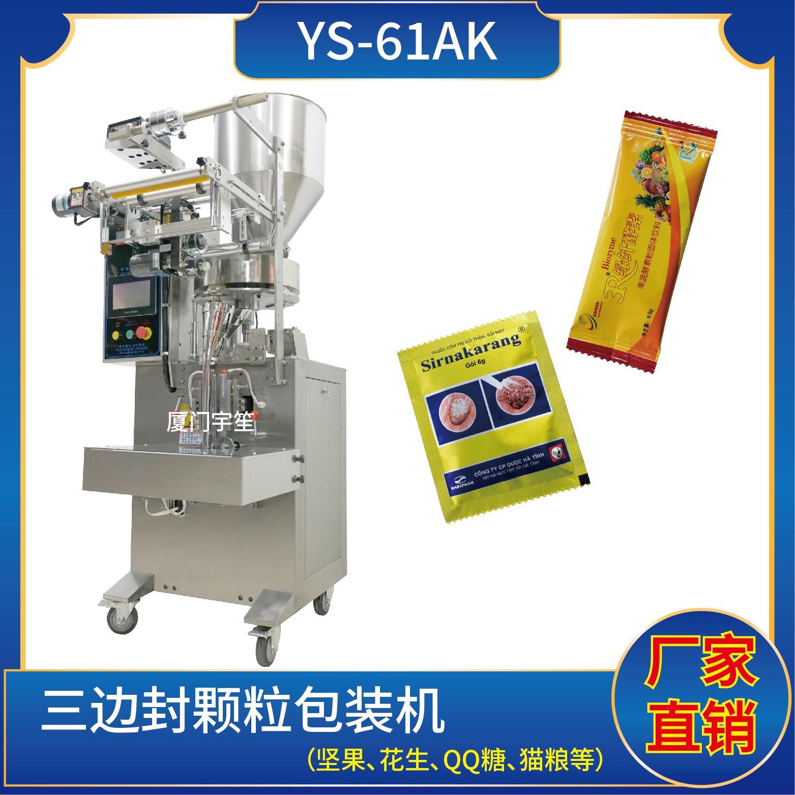 YP-60EK 三角袋包裝機(jī)1、適用于食品、醫(yī)藥、化工、化妝品行業(yè)中顆粒物品的計(jì)量包裝。2、可自動(dòng)完成制袋、計(jì)量、下料、封合、分切、計(jì)數(shù)、且可根據(jù)客戶要求配置打印批號(hào)等功能。3、觸摸屏操作,PLC 控制,驅(qū)動(dòng)步進(jìn)電機(jī)控制袋長(zhǎng),性能穩(wěn)定、調(diào)整方便、檢測(cè)準(zhǔn)確。智能式溫控儀,PID調(diào)節(jié),保證將溫度的誤差范圍控制在1℃以內(nèi)?!?/p>
