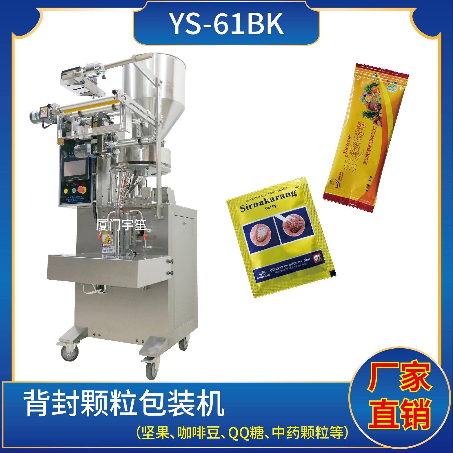 YP-61BK 背封顆粒包裝機特點1、適用于食品、醫(yī)藥、化工、化妝品行業(yè)中顆粒物品的計量包裝。2、可自動完成制袋、計量、下料、封合、分切、計數(shù)、且可根據(jù)客戶要求配置打印批號等功能。3、觸摸屏操作,PLC 控制,驅(qū)動步進電機控制袋長,性能穩(wěn)定、調(diào)整方便、檢測準(zhǔn)確。智能式溫控儀,PID調(diào)節(jié),保證將溫度的誤差范圍控制在1℃…