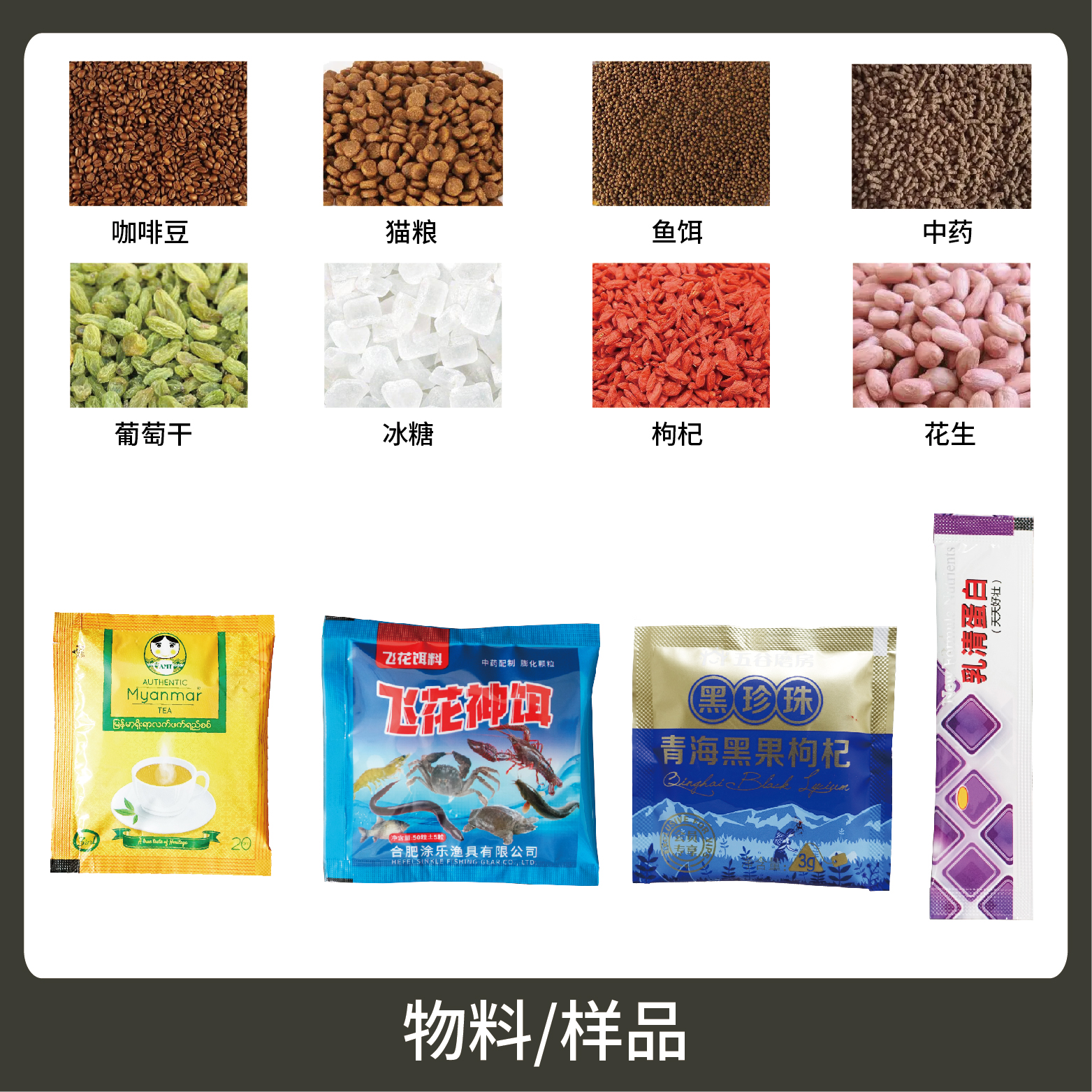 適用于食品、醫(yī)藥、化工、化妝品行業(yè)中顆粒、粉劑、液體、醬料等物品的計(jì)量包裝,如:干果、種子、辣椒面、咖啡粉、谷物粉、辣椒油、牛奶等。